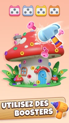 Le contrôle intuitif de 3D Bolt Master : Screw Pin Jam vous offre une liberté totale : faites pivoter les assemblages 3D à 360° et zoomez sans restriction pour scruter chaque angle et dénicher la solution optimale. Laissez-vous porter par des effets sonores ASMR immersifs – des clics précis aux grincements satisfaisants – qui transforment chaque mouvement en une expérience auditive relaxante et engageante. Chaque niveau est une œuvre d'art, des scènes pastel apaisantes aux défis experts qui mettront à l'épreuve les plus grands "professeurs des écrous". Venez explorer une multitude de créations détaillées, des objets du quotidien aux monstres amusants, et perfectionnez votre stratégie avec une gamme d'outils spéciaux pour maîtriser l'art du dévissage.