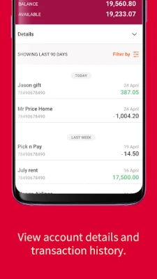 Découvrez une vision holistique de tous vos comptes grâce à une interface claire et épurée. L'Absa Banking App vous offre la possibilité de visualiser un panorama complet de vos avoirs et de suivre chaque mouvement financier. Plongez au cœur de votre historique de transactions avec des filtres avancés, vous permettant de retrouver instantanément les informations pertinentes selon vos critères spécifiques. Effectuez des transferts d'argent entre vos propres comptes avec une facilité déconcertante, garantissant des opérations rapides et sans effort.