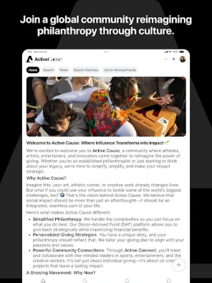 Pour les visionnaires désireux de transformer leur influence en un bien durable, qu'ils soient athlètes de renom, artistes innovants, marques engagées ou bureaux de gestion de patrimoine familial, Active Cause est la plateforme dédiée. Elle tisse un lien entre les leaders culturels et les outils essentiels, le réseau d'experts et les connaissances approfondies pour concrétiser des actions philanthropiques significatives et mesurables. Libérez votre potentiel d'impact avec une structure fluide et intuitive, conçue pour amplifier chaque geste de générosité et ancrer votre vision dans le monde.