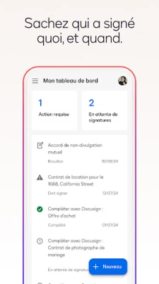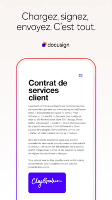 Oubliez les contraintes liées à l'impression, la télécopie, la numérisation et l'attente interminable des signatures manuscrites. Docusign révolutionne la gestion documentaire en vous offrant une plateforme sécurisée et efficace pour toutes vos transactions numériques. En quelques gestes intuitifs, signez un document, envoyez-le pour approbation ou gérez des flux de travail complexes, le tout depuis votre appareil mobile. Des millions d'utilisateurs dans 188 pays font déjà confiance à Docusign, attestant de son rôle incontournable dans des secteurs variés tels que la finance, le droit, les ressources humaines, les achats, la santé et l'immobilier, transformant chaque interaction professionnelle.