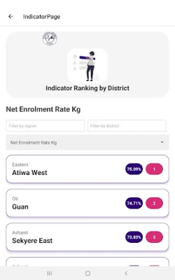 Découvrez Ghana Stats App du Ghana Statistical Service. Cette application innovante renforce la transparence et stimule le progrès dans les 261 districts du Ghana. Elle s'appuie sur 16 indicateurs de développement clés, incarnant la devise "Compétition des districts pour le développement national".