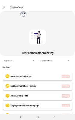 Cette plateforme centralise un éventail complet de seize indicateurs cruciaux, offrant une vision panoramique du bien-être et de la prospérité. Du taux net de scolarisation à l'accès aux services d'assainissement de base, en passant par l'emploi des personnes handicapées ou le taux d'alphabétisation des adultes, chaque donnée est une pièce maîtresse pour évaluer les performances régionales. Que ce soit la pauvreté multidimensionnelle, l'accès à l'eau potable, l'utilisation d'énergies propres pour la cuisson, l'accès à l'électricité, l'emploi vulnérable ou même l'accès à Internet, l'application révèle des informations vitales, présentant le pourcentage et le classement de chaque district pour une analyse comparative précise.